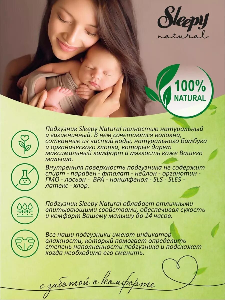 Подгузники-трусики Sleepy Natural, размер 2 Mini (3-6кг), 42шт