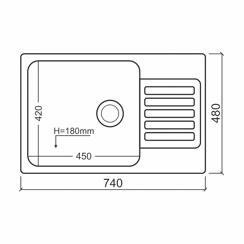 Врезная кухонная мойка 74 см, Reflection Bolero 74, матовое серый