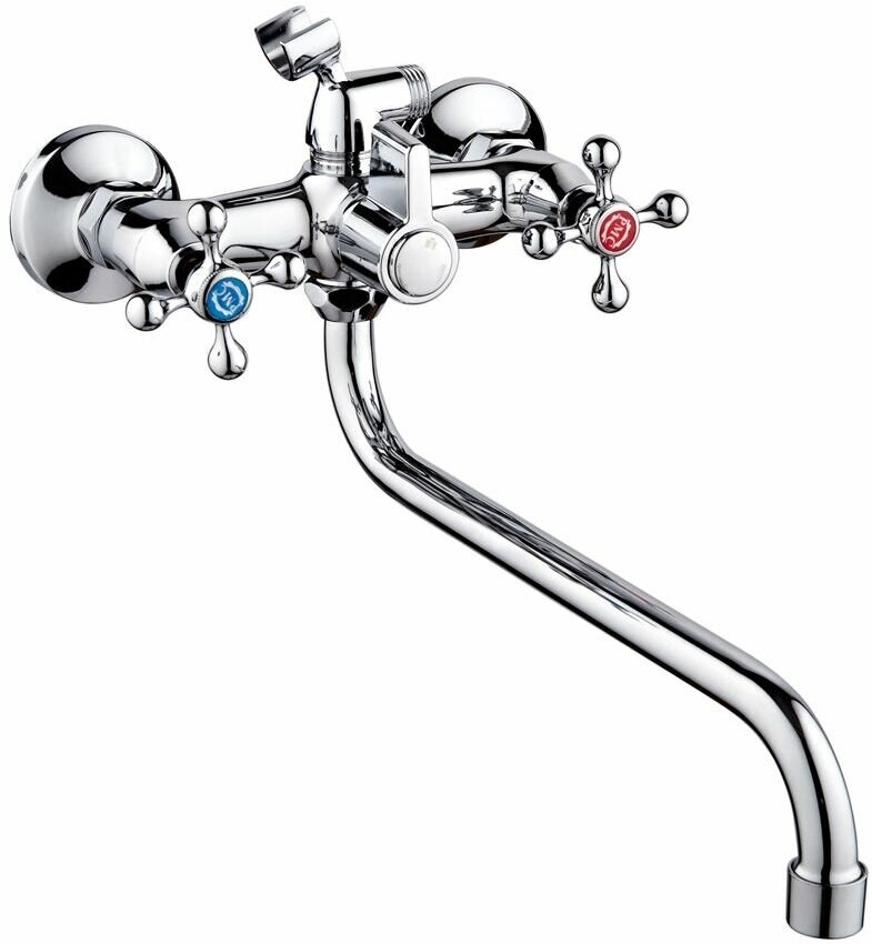 Смеситель для ванны, РМС SL71-140, длинный поворотный излив, с душевой лейкой и шлангом, двухвентильный