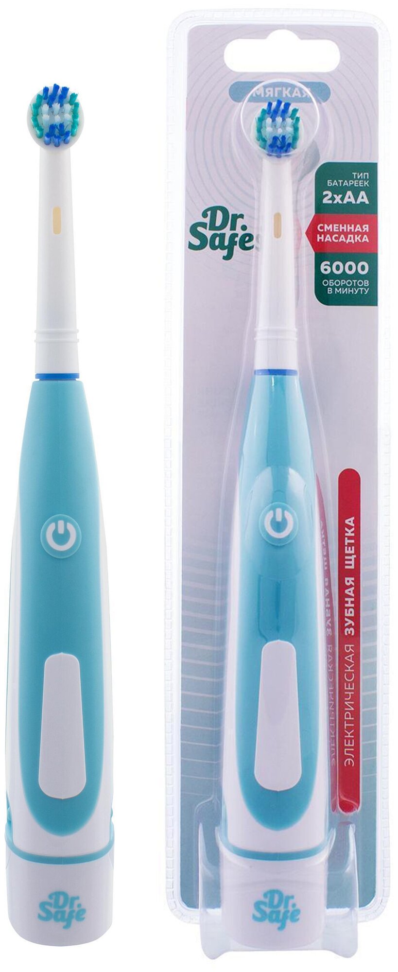Зубная щетка электрическая Dr.Safe, 6000 движений, питание от 2 AA-батареек