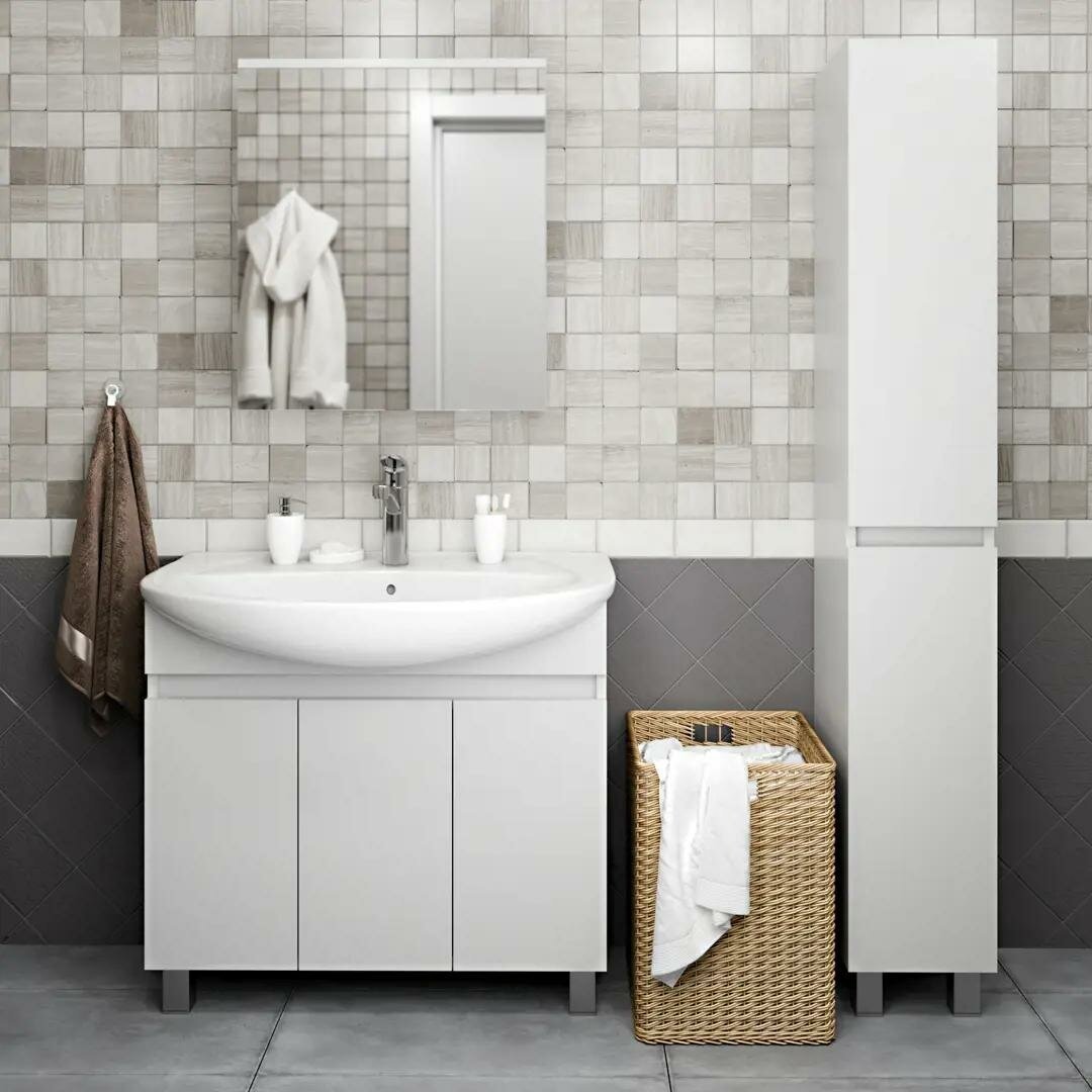 Тумба с раковиной EvaGold Tera 85 Kirovit Элеганс 85 в разборе белая для ванной интересное: