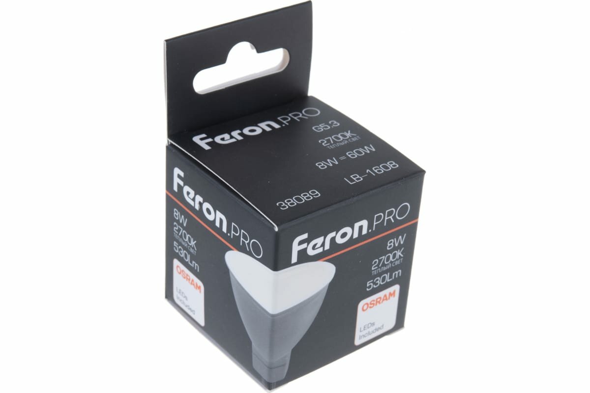 Лампа светодиодная .PRO LB-1608 MR16 G5.3 8W 2700K, FERON 38089 (1 шт.)