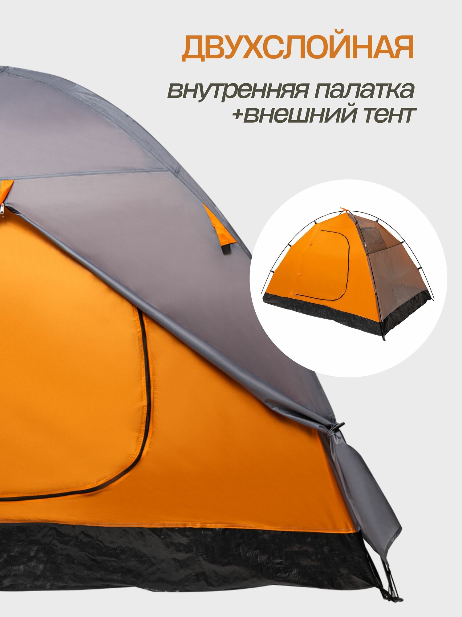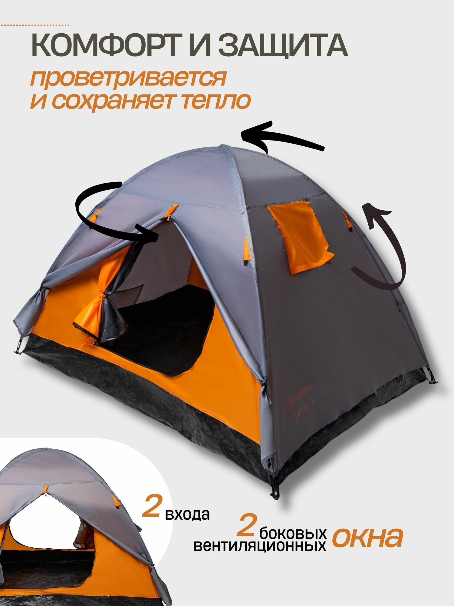 Палатка 2-местная Virtey Vela-2 /(60+150+60)*210*110/Палатка туристическая 2 местная двухслойная с 2 входами/тент для рыбалки/шатер для похода