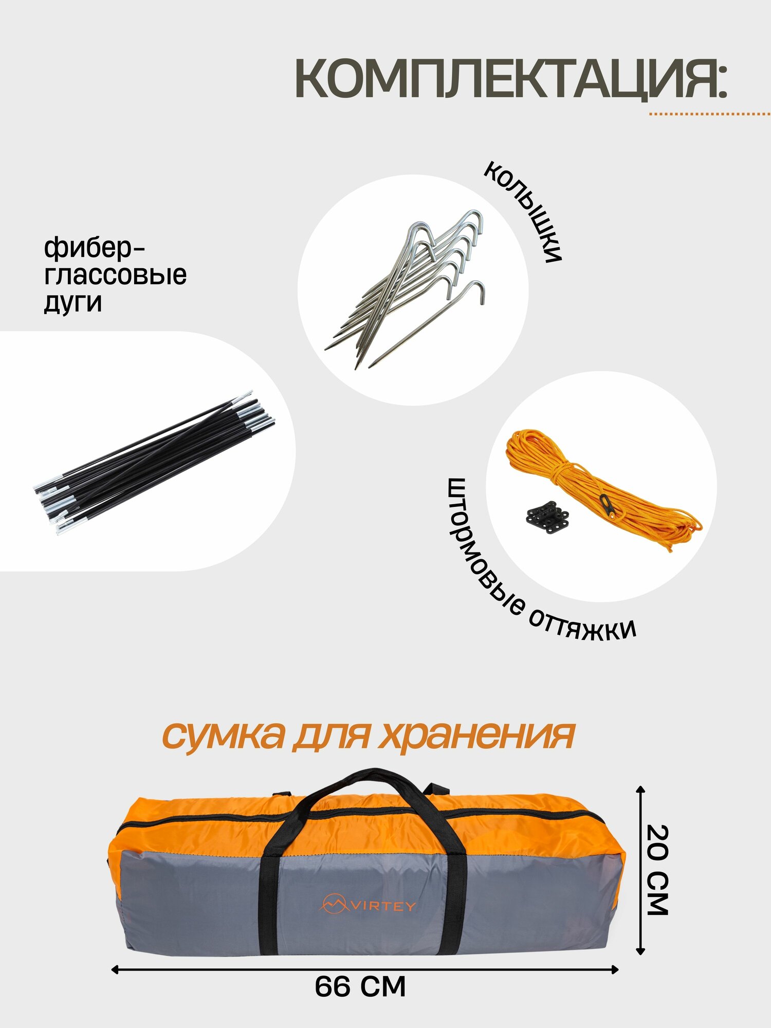 Палатка туристическая 2х местная двухслойная с 2 входами Virtey Vela-2 (270х210х110 см) интересное: