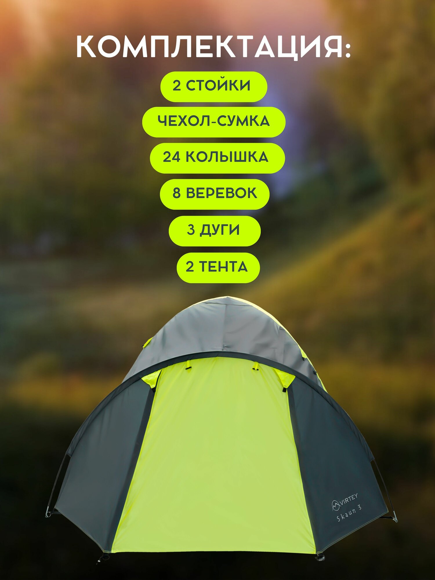 Палатка туристическая 3х местная двухслойная с тамбуром Virtey Skaun-3 (450*210*140 см) интересное:
