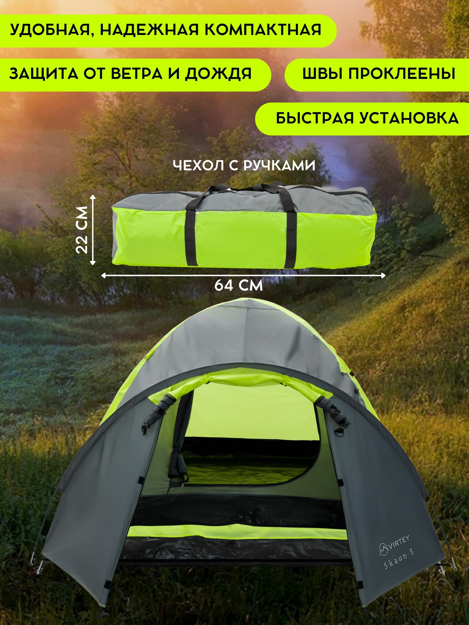 Ниже Вы можете прочитать отзывы на Палатка туристическая 3х местная двухслойная с тамбуром Virtey Skaun-3 (450*210*140 см), ознакомится с подробными характеристиками, посмотреть интересные обзоры и фотографии на Палатка туристическая 3х местная двухслойная с тамбуром Virtey Skaun-3 (450*210*140 см).