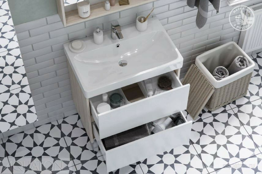Купить Комплект тумба Акватон Сканди 70 белая дуб верона с раковиной Адриана 70 1A2518K0SDB20