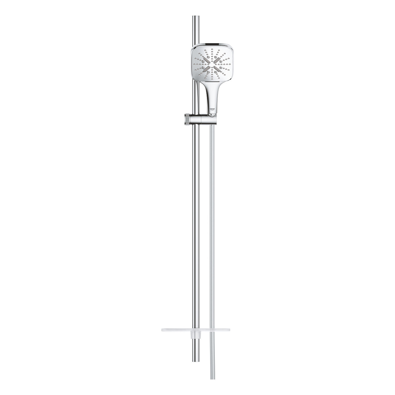| Комплектация | Rainshower SmartActive 130 Cube Ручной душ (26550) / душевая штанга 900 мм с металлическими настенными креплениями душевой шланг 1750 мм (28388000) / Полочка GROHE EasyReach |