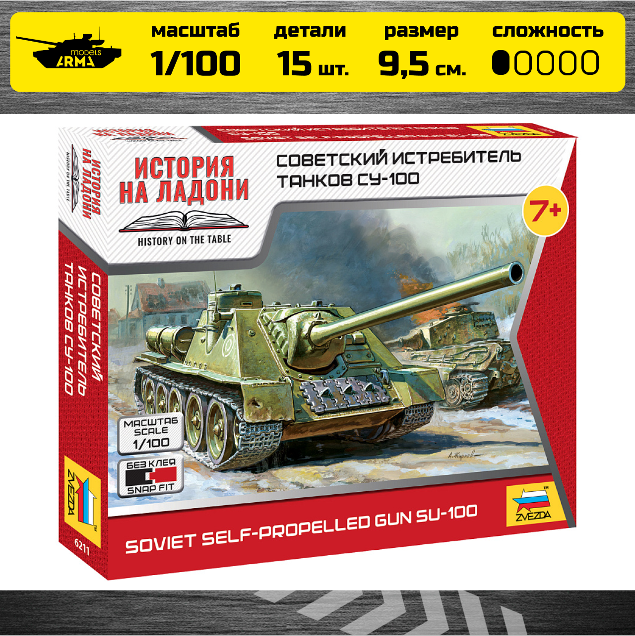 Модель для сборки Звезда (ZVEZDA) САУ СУ-100, масштаб 1:100 (6211)