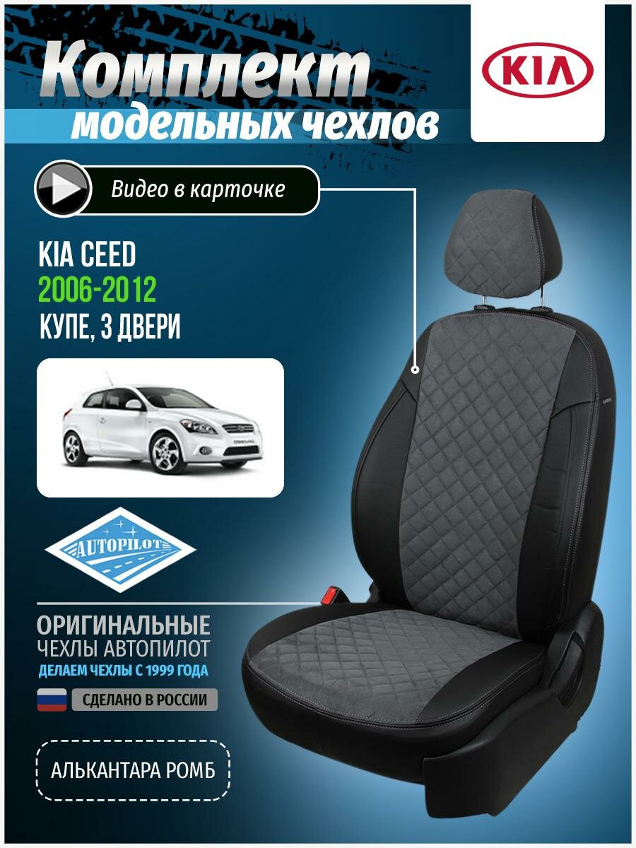 Чехлы на автомобильные сидения Автопилот для KIA Ceed I Hb / Wag 5-ти дв. c 07-12г. (Алькантара ромб, Черный + Серый)