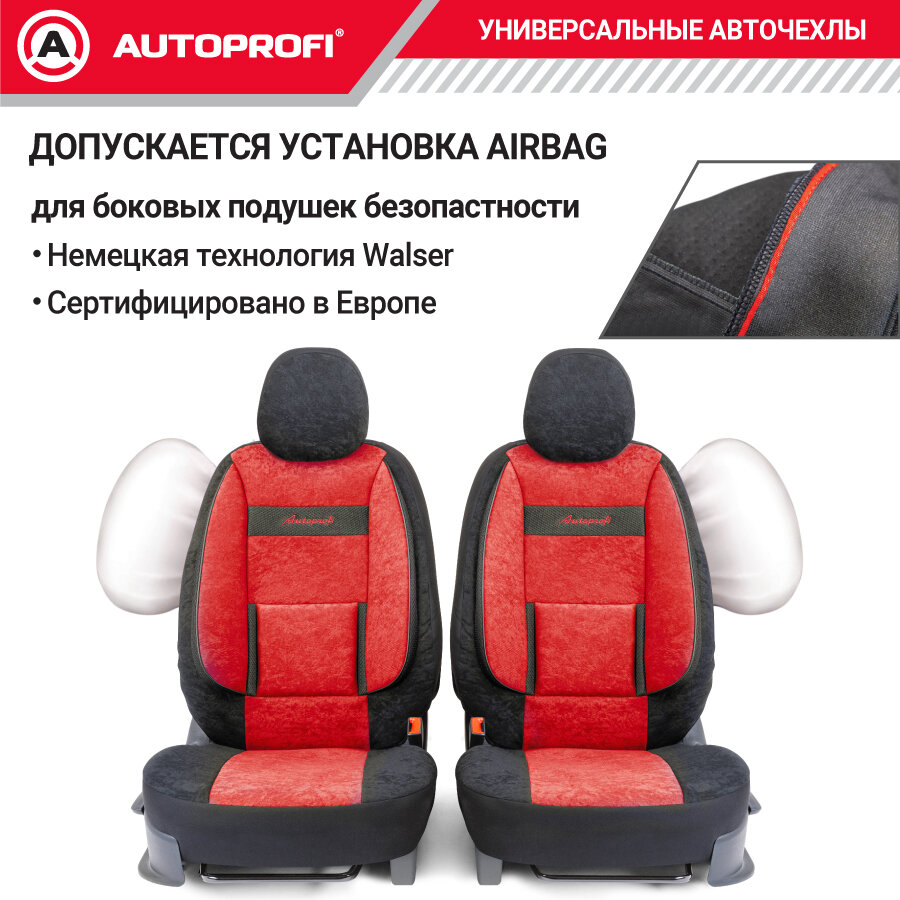 AUTOPROFI CMB-1105 BK/RD (M) чехлы для сиденья comfort combo, карман, 6 молний, чёрн. / красный, разм.м\