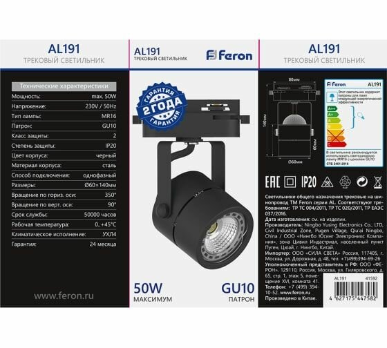 Ниже Вы можете прочитать отзывы на AL191 светильник трековый под лампу GU10, черный, Feron, 41592, ознакомится с подробными характеристиками, посмотреть интересные обзоры и фотографии на AL191 светильник трековый под лампу GU10, черный, Feron, 41592.