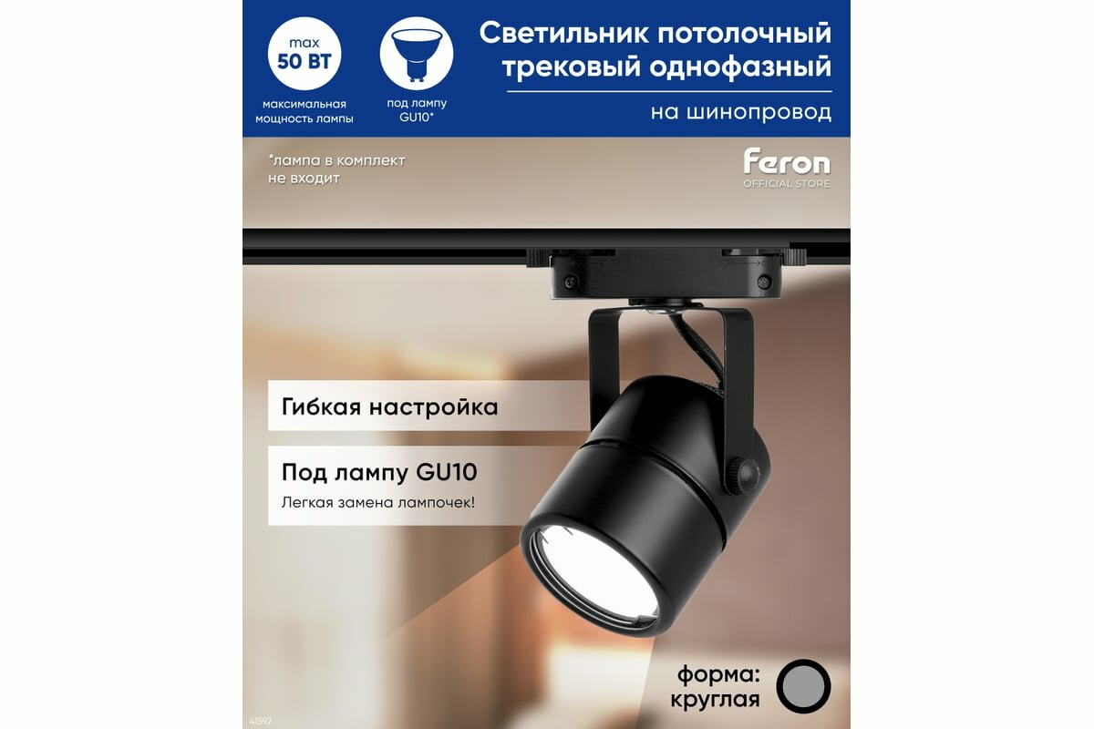 СохранитьAL191 светильник трековый под лампу GU10, черный, Feron, 41592 интересное: