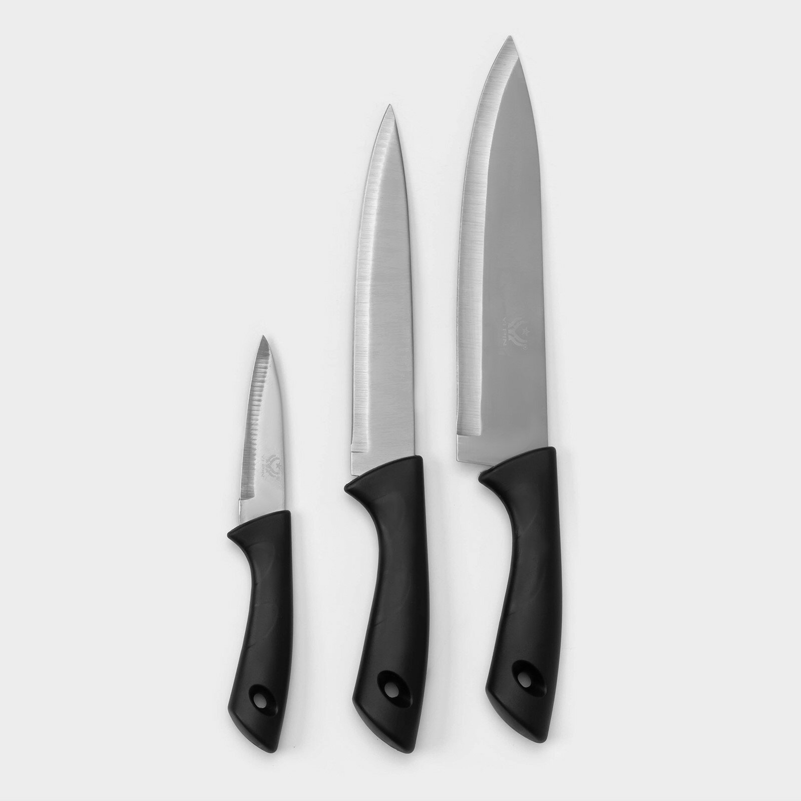 Купить Набор кухонных ножей «Энеолит», 3 предмета, лезвие 8,5 см, 17 см, 20 см, цвет чёрный