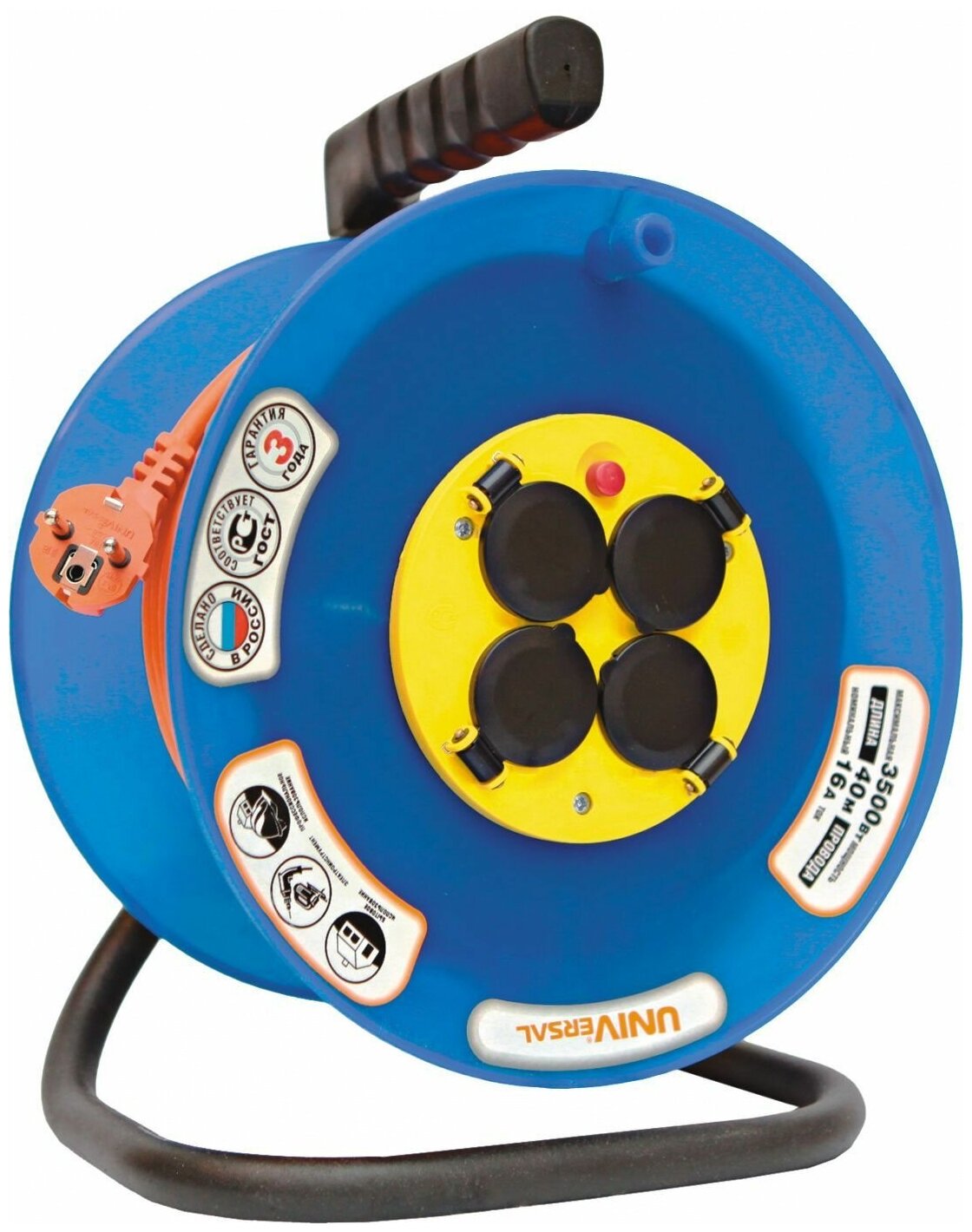 Купить 9634174 Удлинитель на катушке 4х30м с заземл. 16А IP44 ВЕМ-250 термо ПВС 3х1.5 розетки с защ. крышкой Universal