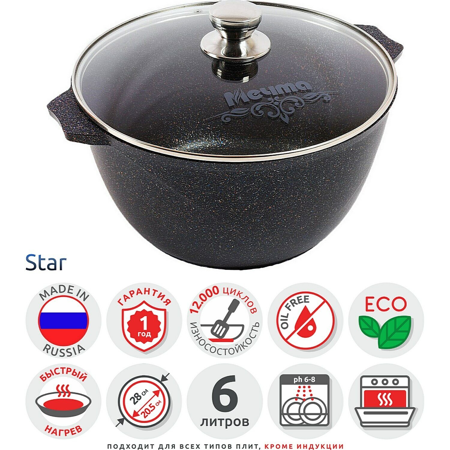 Кастрюля Мечта 6 л Гранит с антипригарным покрытием с крышкой, НЕ индукционная
