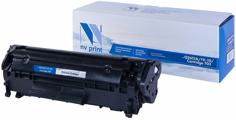 Картридж NV Print NV-Q2612A/FX10/703, черный, 2000 страниц, совместимый для LJ M1005/M1319f/3050/3050z/3015/3020/3030/M1120/M1120n/1010/1012/1015/1020/1022/1022n/1022nw, LJ Pro M521dw, MultiPass L100/L120/MF4010/4018/4120/4140/4150/4270/4320D