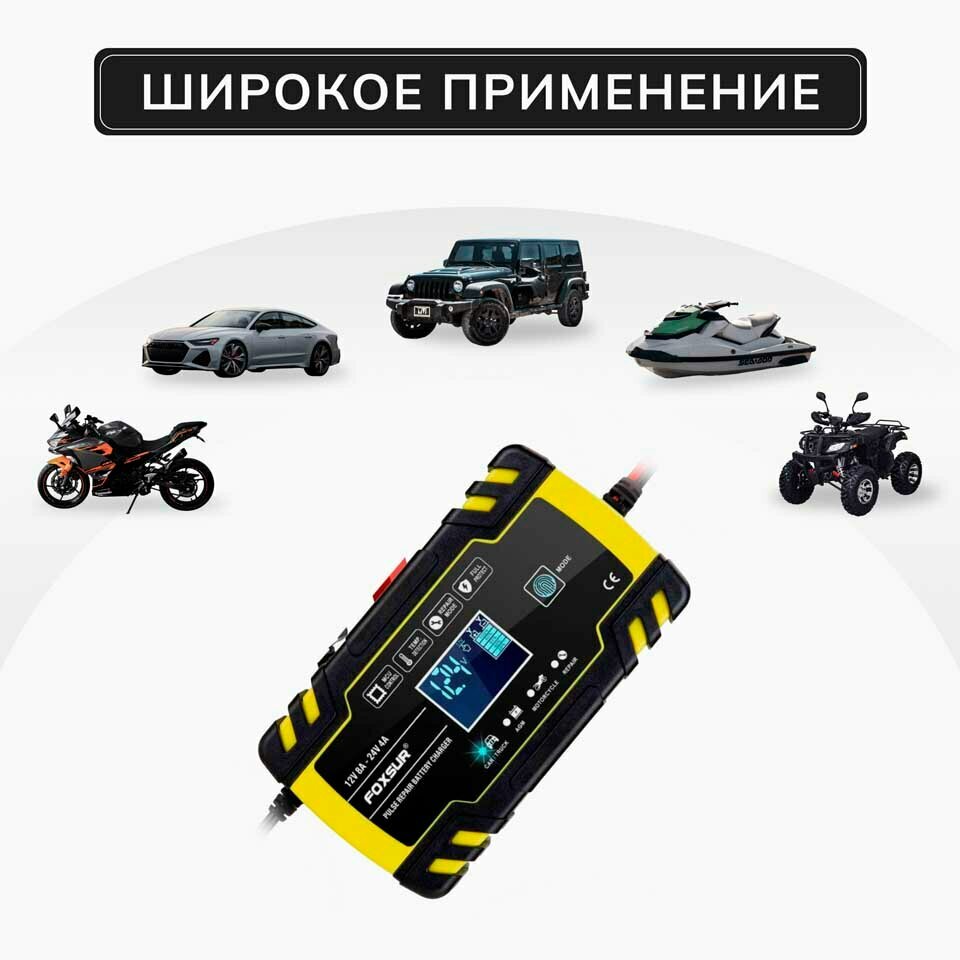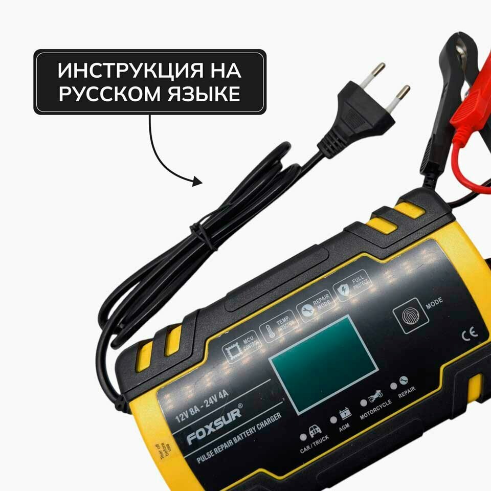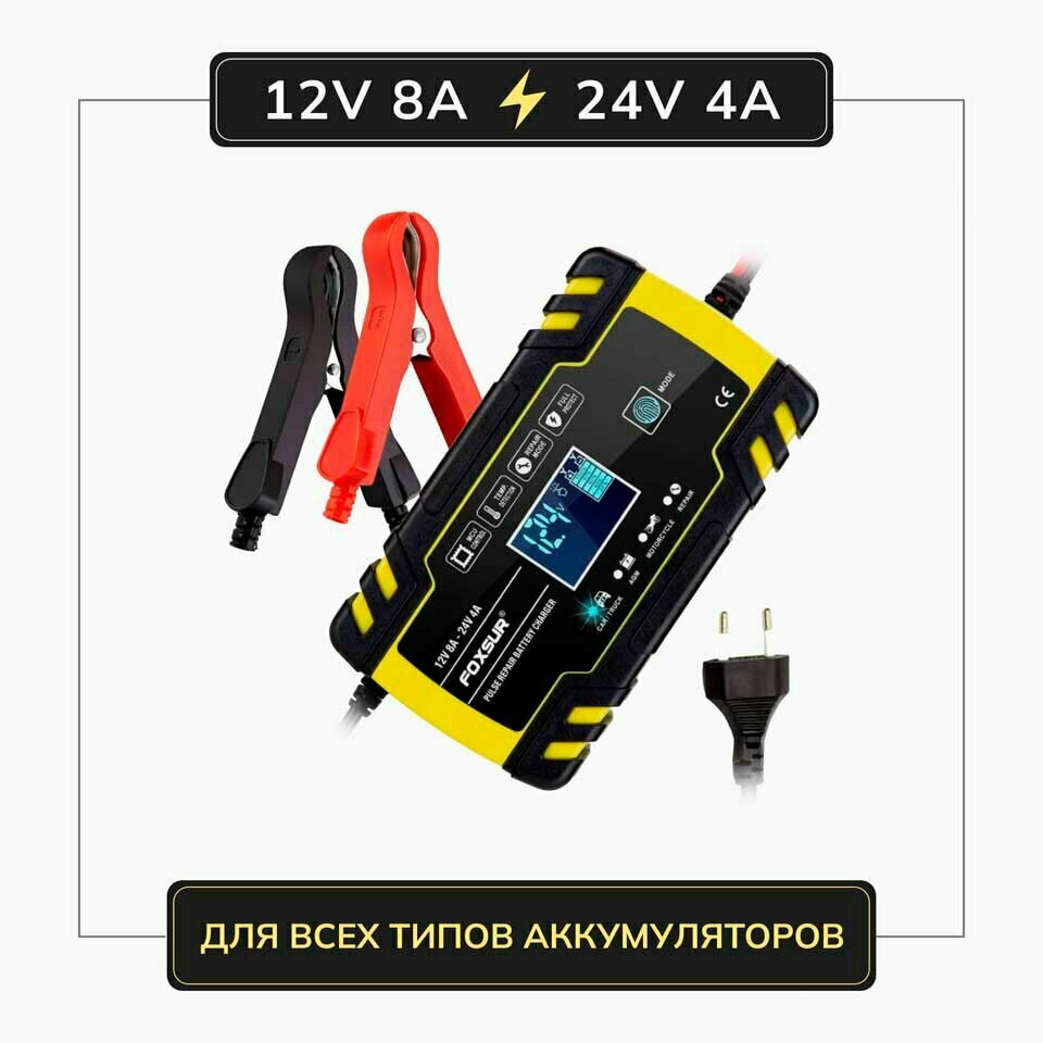 Автомобильное зарядное устройство 12 В - 24 В / Автоматическая зарядка АКБ / Устройство зарядное 12В-8А 24В-4А / Зарядное устройство FOXSUR