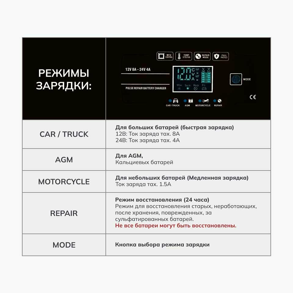 Зарядное устройство для АКБ FOXSUR 12V 8A / 24V 4A интересное: