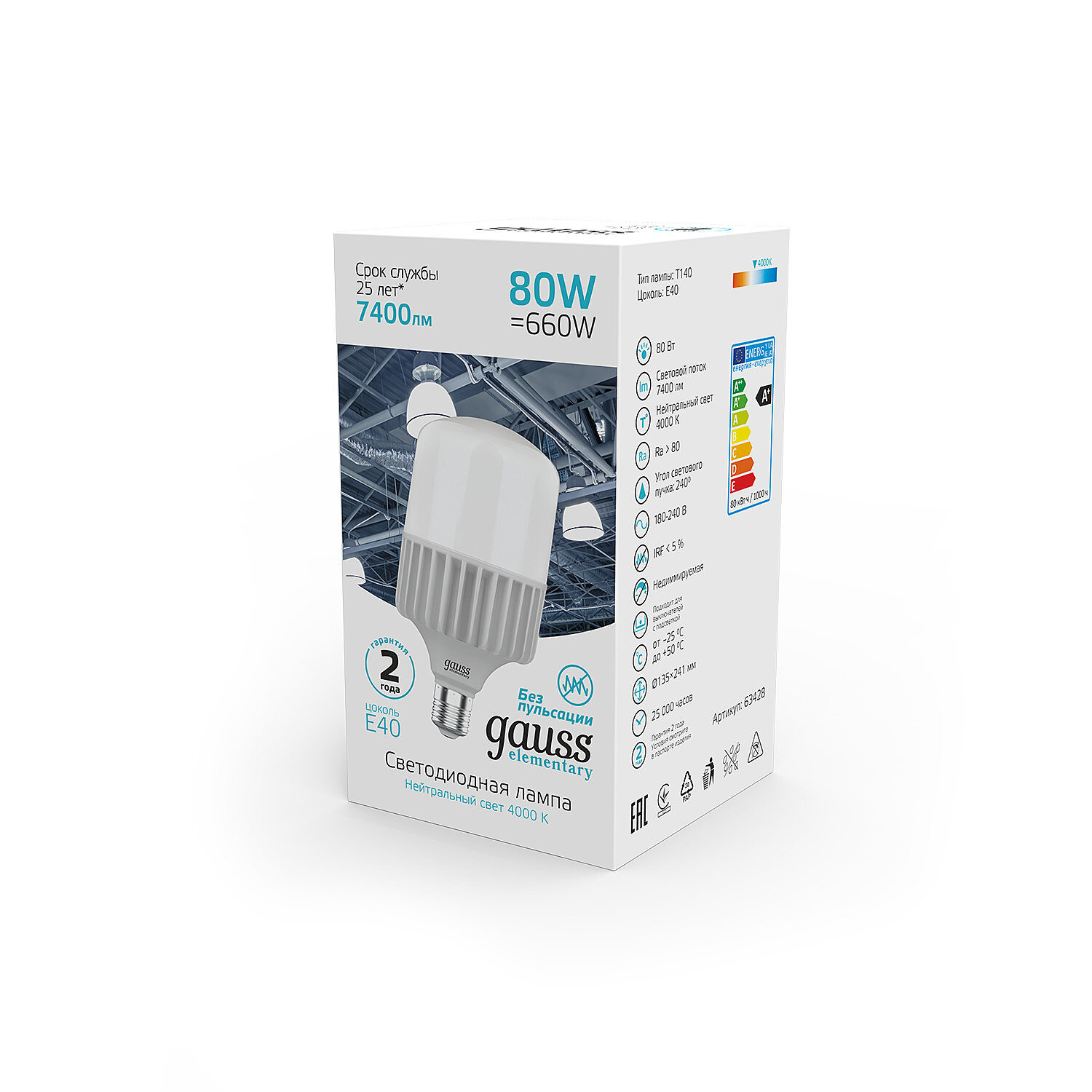 Gauss Лампа Elementary T140 80W 6400lm 4000K E40 LED 1/8 63428 интересное: