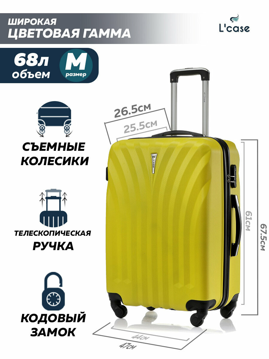 Чемодан семейный на колесиках L'Case Phuket (материал: ABS-пластик, кодовый замок, съемные колесики, размер M, черный)