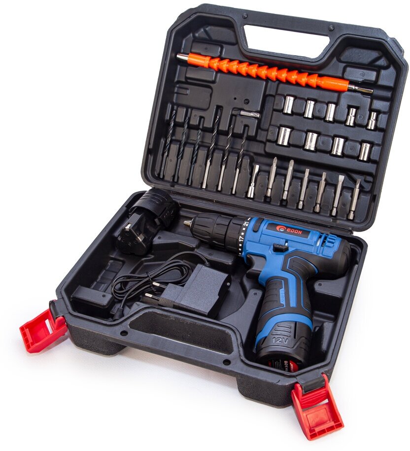 Аккумуляторная дрель-шуруповерт Edon CF-1201 + набор 201010100010