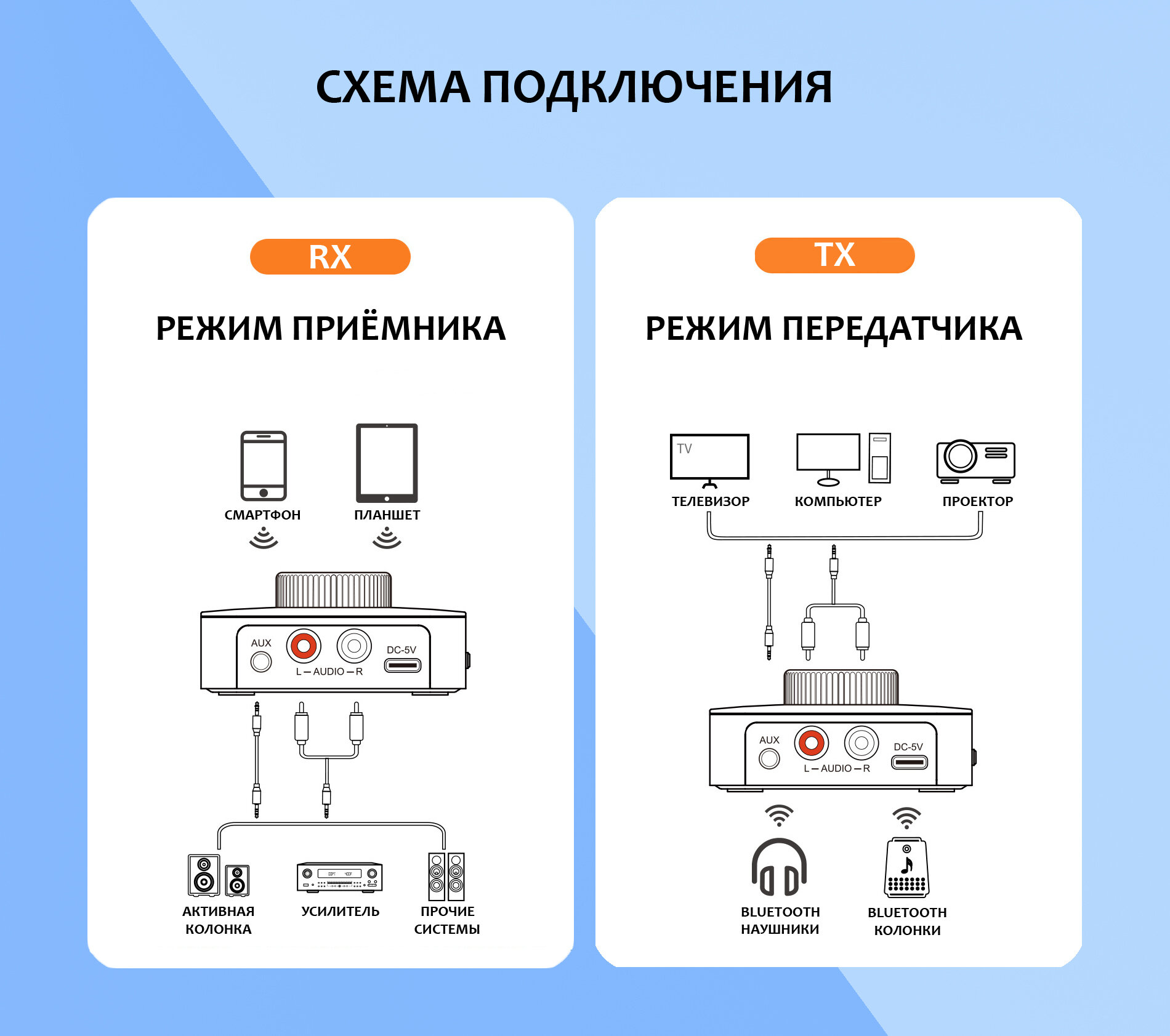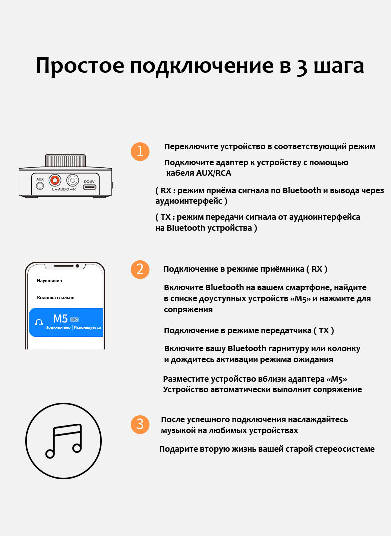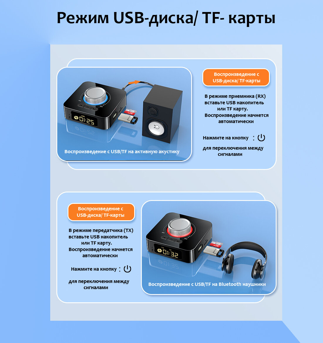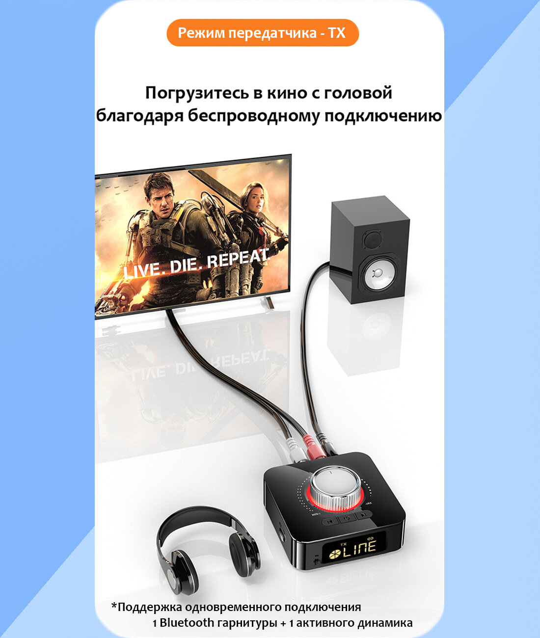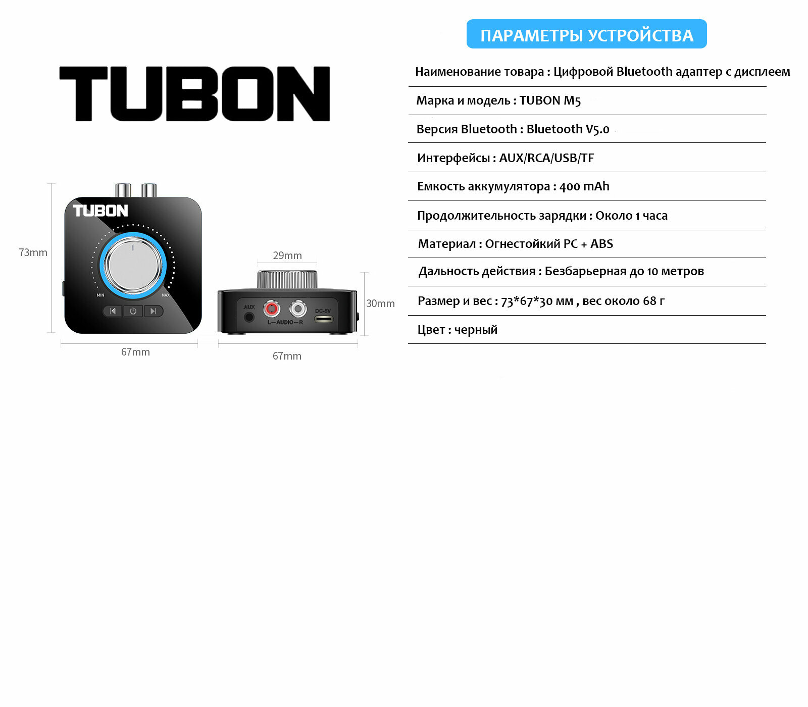 Адаптер Bluetooth Transmitter / Reciever Трансмиттер / Ресивер (Приемник / Передатчик аудио) 3.5 jack ( aux ), RCA, MicroSD ( TF ), USB Flash TUBON M5 интересное: