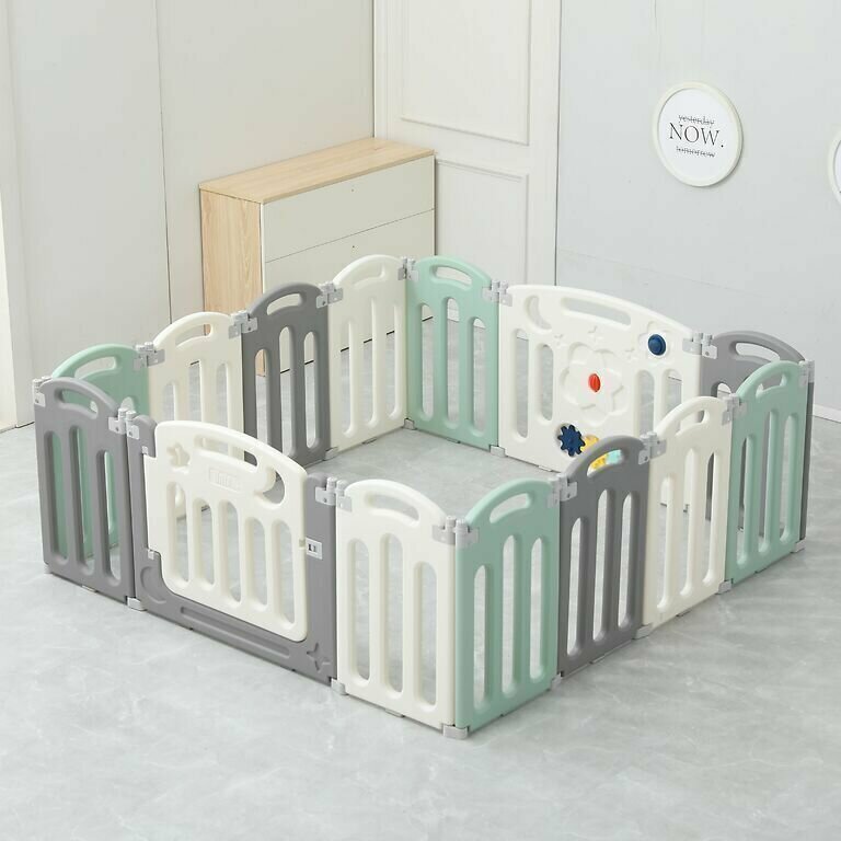 Манеж UNIX Kids "Simple" Color,серый/белый/зеленый, 188x188 см, комплекс для дома, для улицы, вольер для собак, щенков