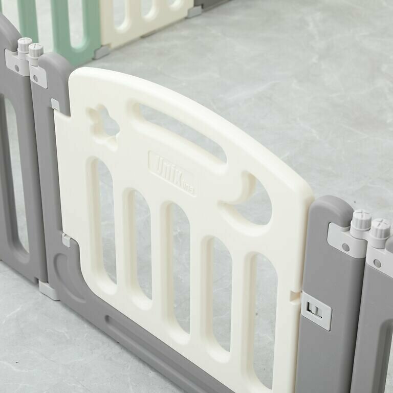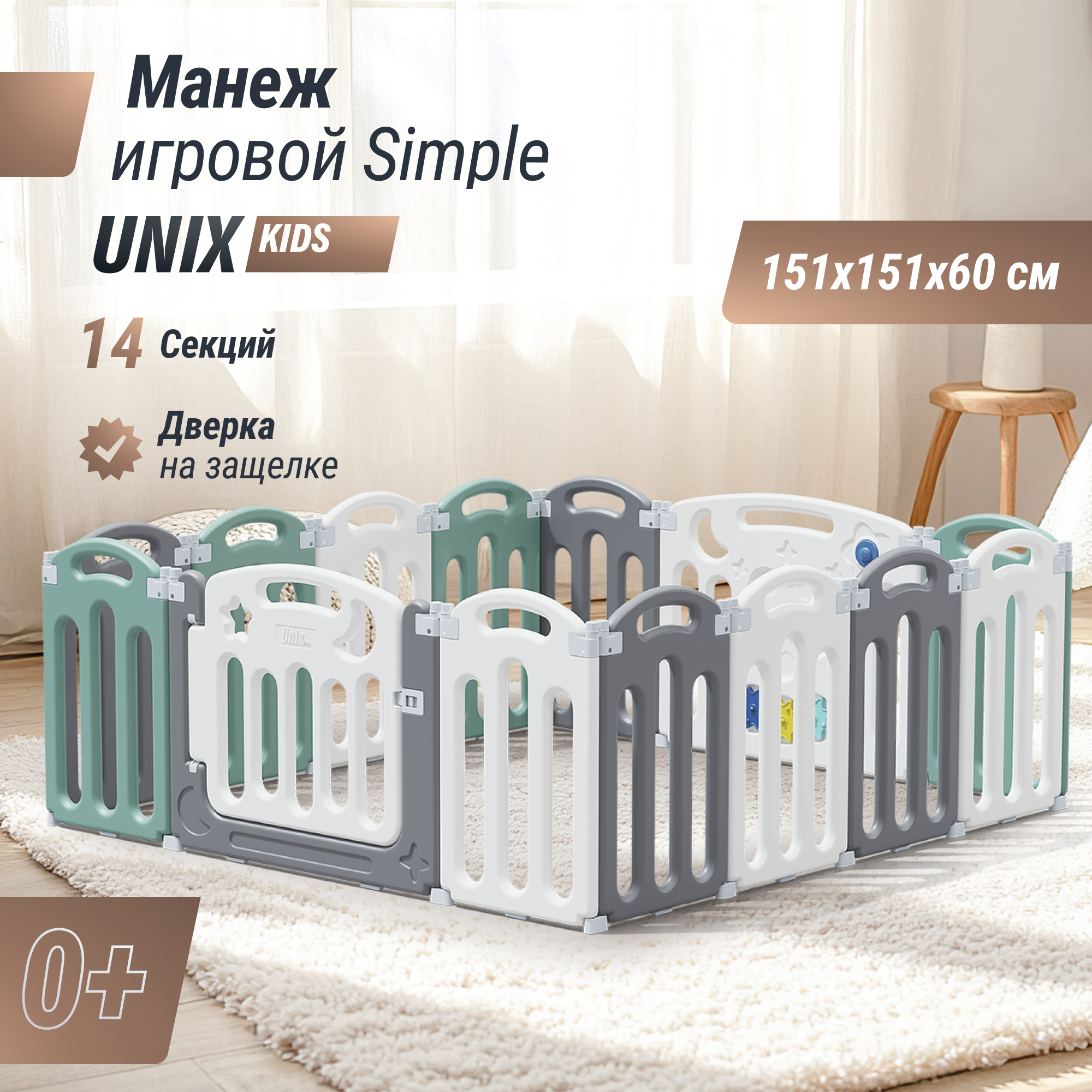 Купить Манеж UNIX Kids Simple, для дома и улицы, бизиборд, от 0 месяцев, складной, белый/серый/зеленый, 151x151 см
