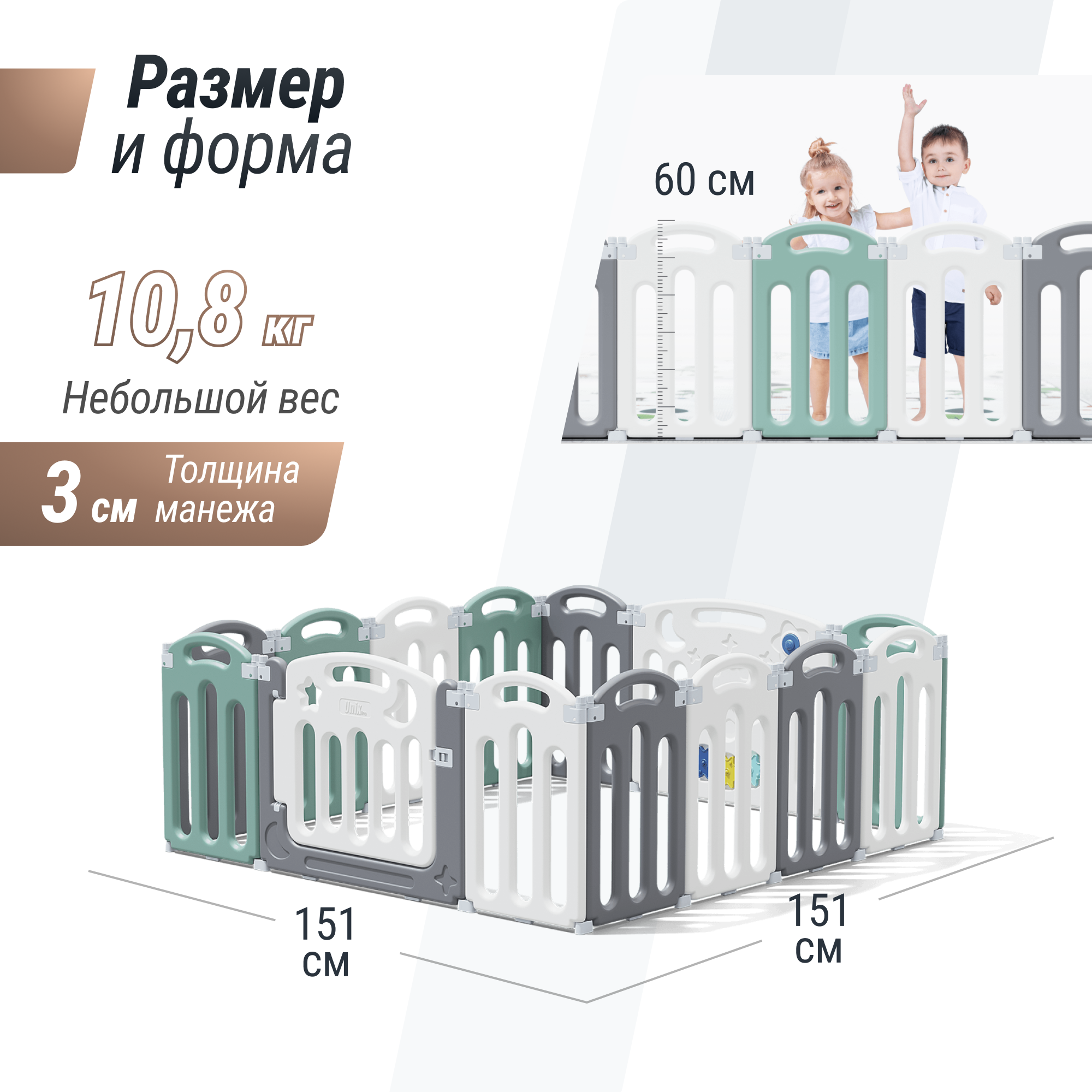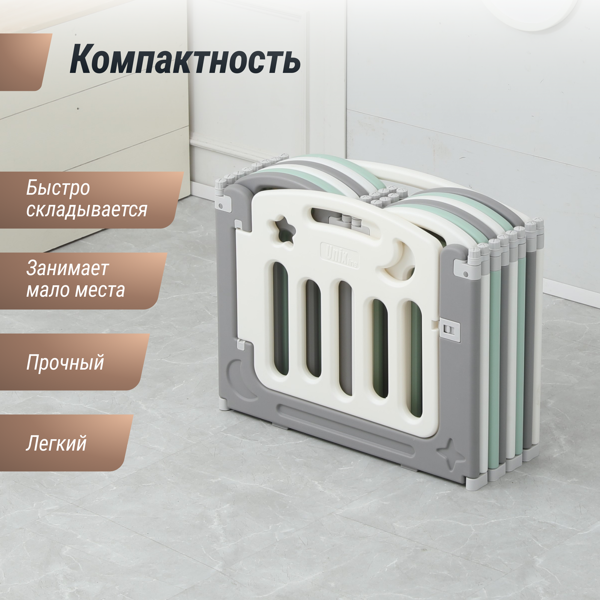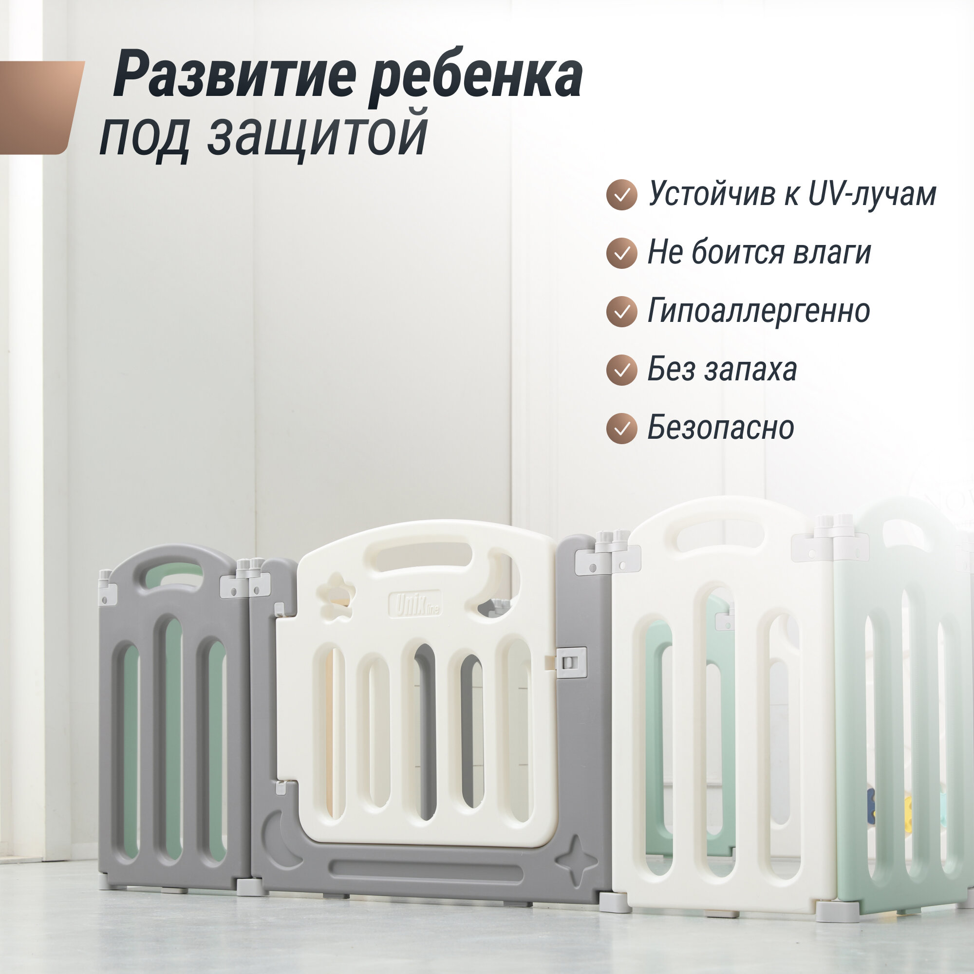 СохранитьМанеж UNIX Kids Simple, для дома и улицы, бизиборд, от 0 месяцев, складной, белый/серый/зеленый, 151x151 см интересное: