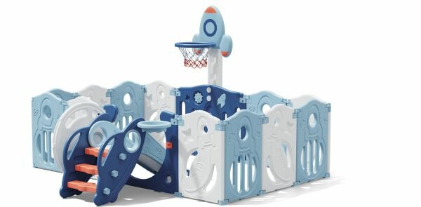 Манеж UNIX Kids "SUPREME Space" Blue, голубой/синий, 160x160 см, с ковриком, горкой и баскетбольным кольцом для дома и улицы