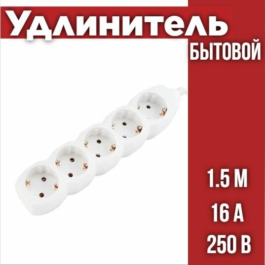 Удлинитель бытовой У05 5 гнезд, 1,5метра, с заземлением, ПВС 3х1мм2 16А/250В TDM, цена за 1 шт