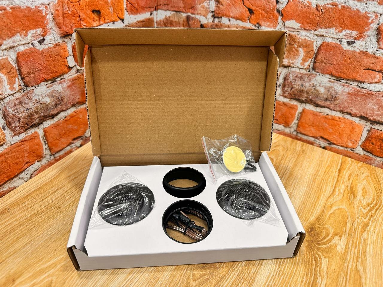 Небольшой размер, хороший звук за свою цену, в комплекте есть все для установки