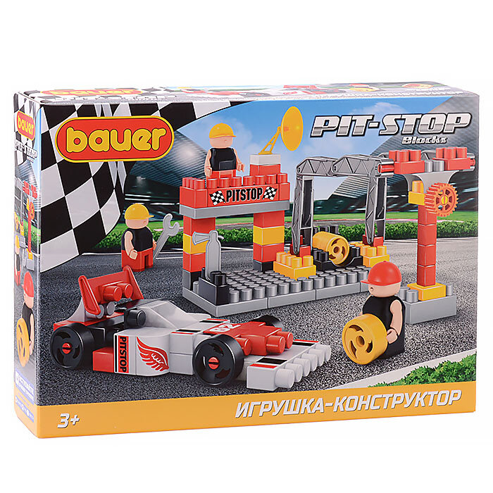 Детский развивающий конструктор Bauer Набор с гоночной машиной и шиномонтажом в коробке "Pit Stop" 3+