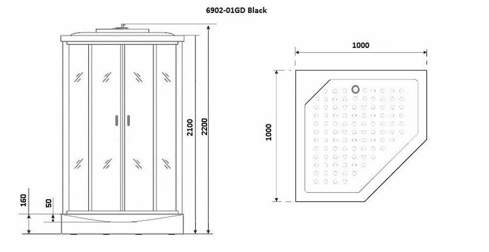 Душевая кабина Niagara NG-6902-01GD BLACK (1000х1000х2200) стекло тонированное