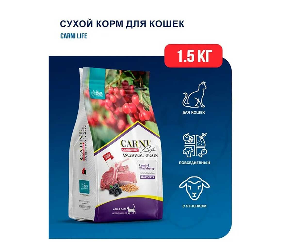 CARNI LIFE ADULT корм для кошек С ягненком, С ежевикой И клюквой , 1,5 КГ