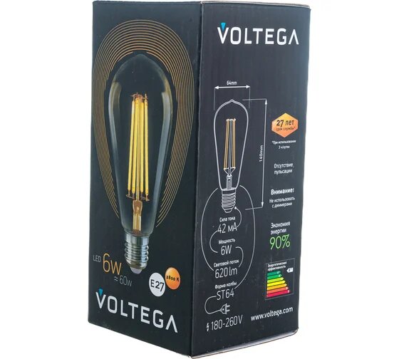 VOLTEGA Лампа Светодиодная Колба ST64 GOLD 6W Е27 2800К 5526 интересное: