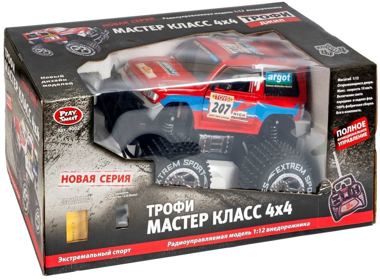 Упр. радио маш. Play Smart BOX 53x24x25 см, джип Трофи Мастер Класс 4 , красный, арт. 9 2