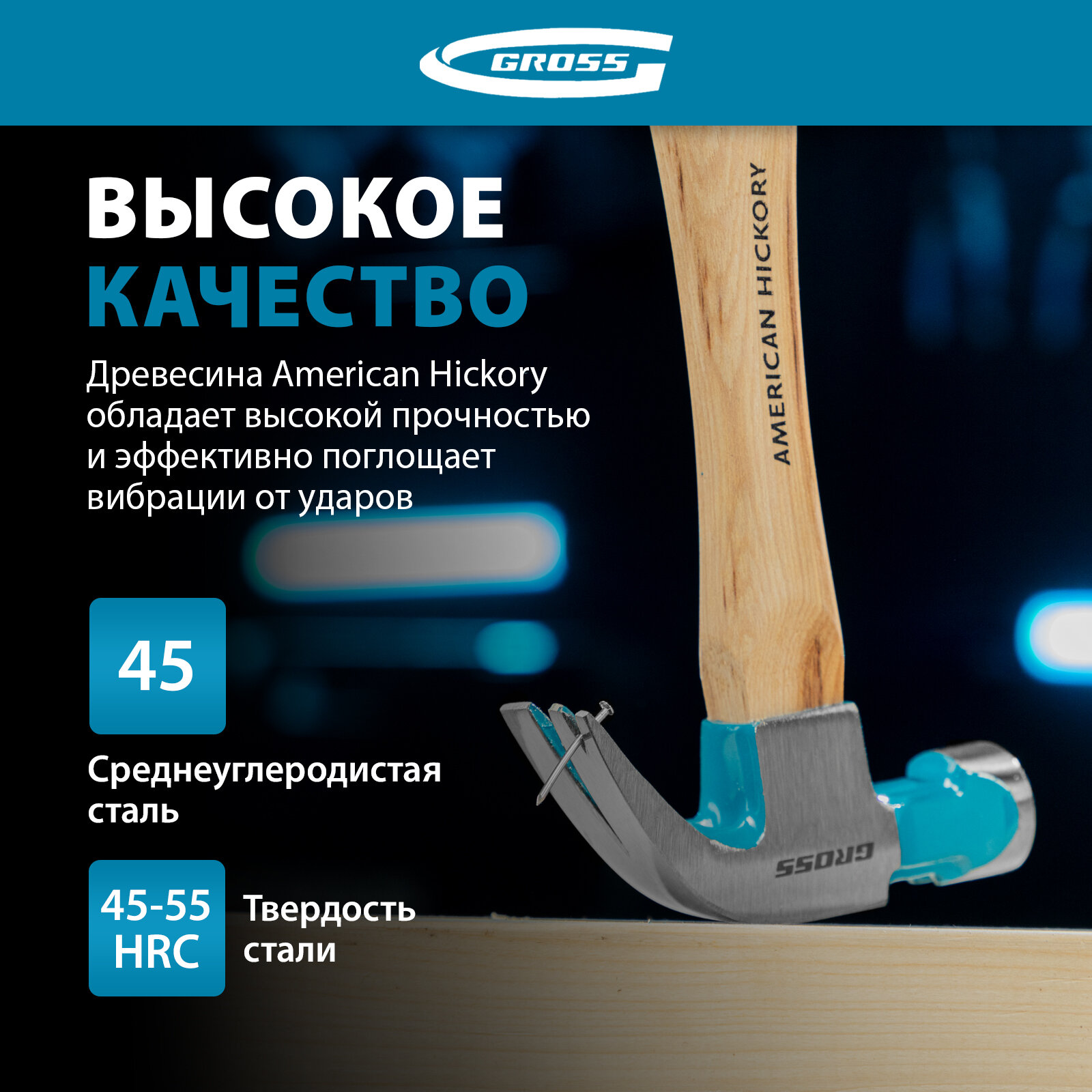 Молоток-гвоздодер GROSS 10417, 280 г, AMERICAN HICKORY, магнит, обрезиненная рукоятка