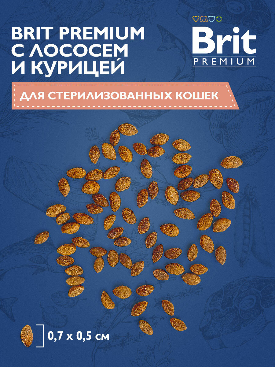 Корм сухой для взрослых кошек BRIT Premium Cat Sterilised Лосось, курица, для кастрированных и стерилизованных, 800г