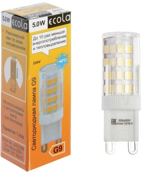 Лампа светодиодная Ecola Corn Micro, G9, 5 Вт, 4200 K, 320°, 50x15 мм, дневной белый
