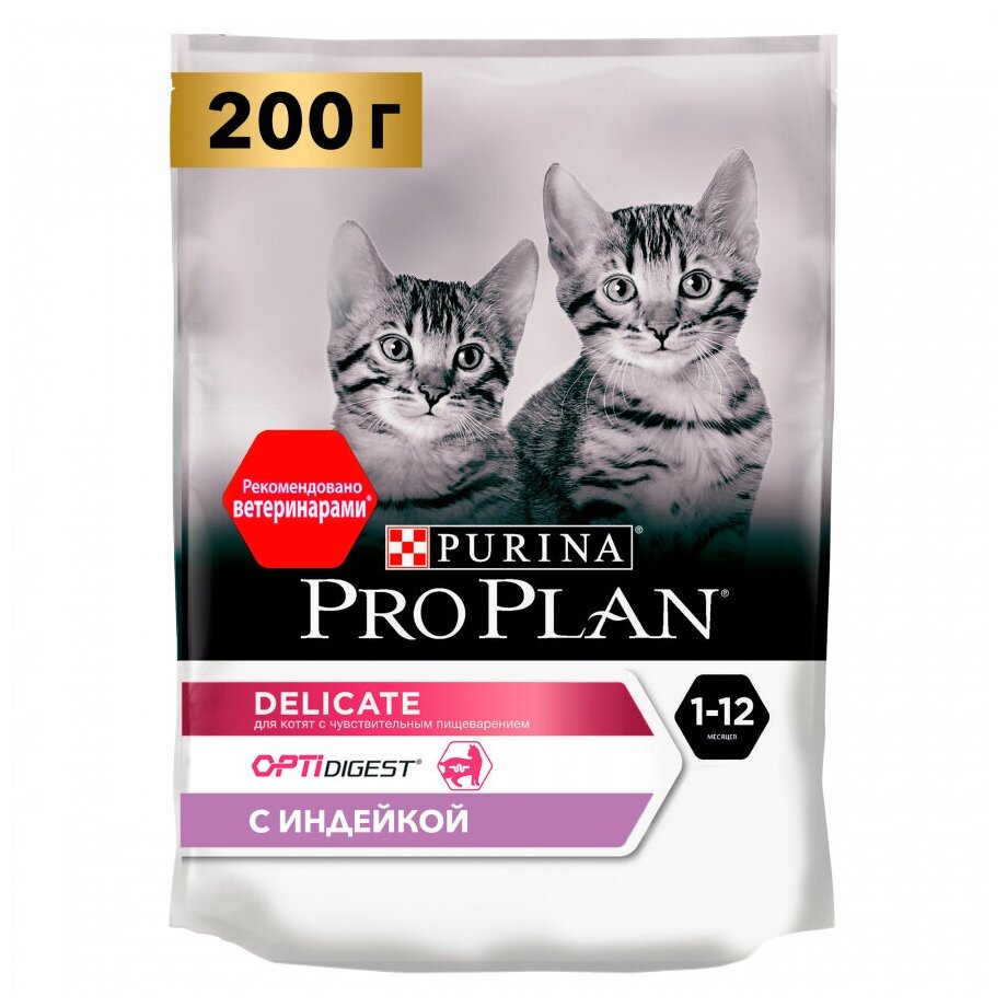 Корм сухой Pro Plan для котят Delicate при чувствительном пищеварении с индейкой 200 г