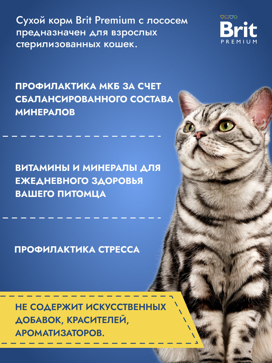 Brit Premium 8кг Cat Adult Salmon корм для кошек с лососем