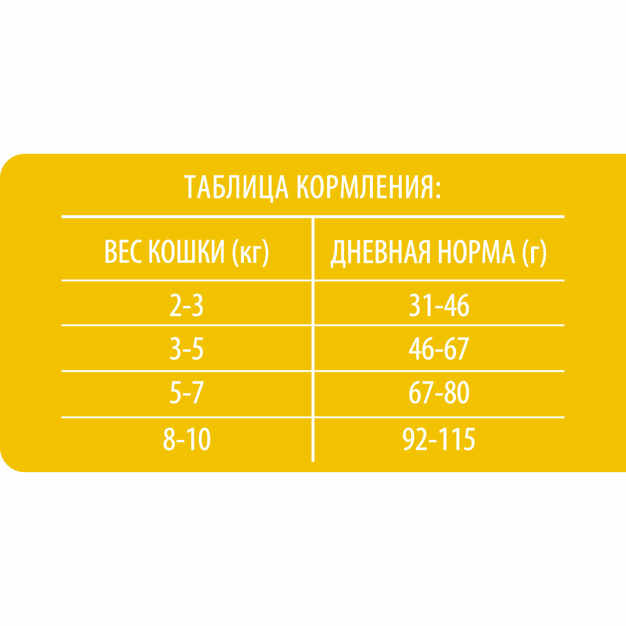 | Особые потребности | для беременных / кормящих кошек / для живущих в помещении / для живущих на улице / для здоровья кожи и блеска шерсти / для здоровья костей и суставов / при чувствительном пищеварении |