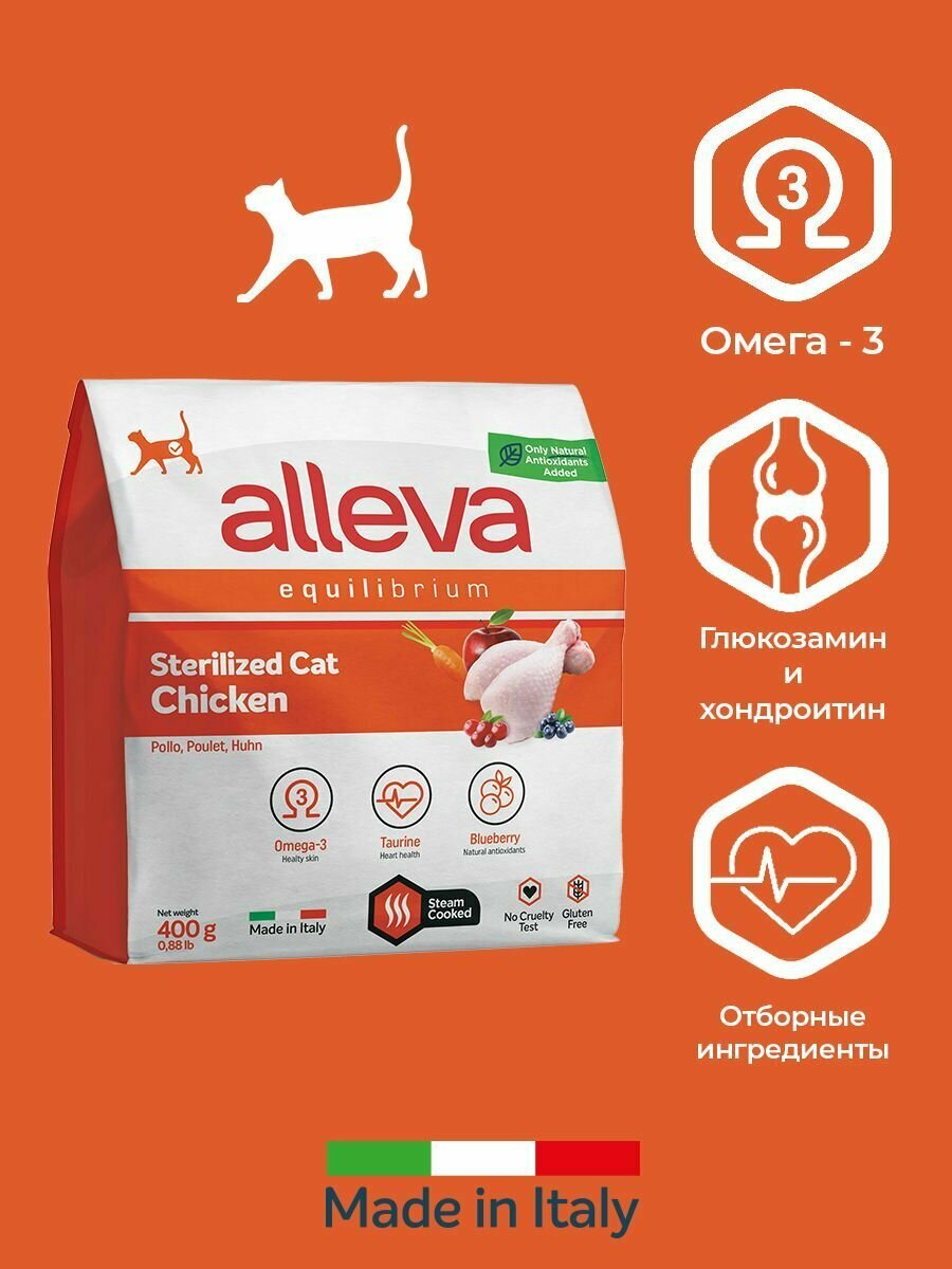 ALLEVA Equilibrium / Аллева Эквилибриум сухой корм для кастрированных котов и стерилизованных кошек с курицей, 0,4 кг