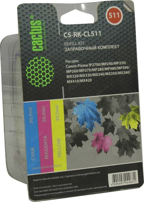 Заправочный набор Cactus CS-RK-CL511 многоцветный, флаконов: 3, объём 30мл, для Canon MP240/MP250/MP260/MP270