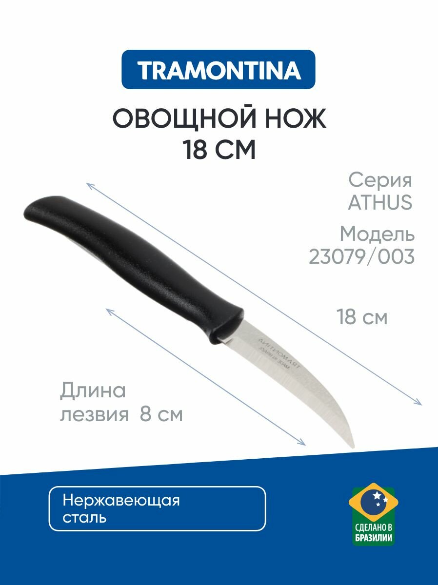 Нож кухонный овощной 8 см Tramontina Athus, маленький нож для чистки овощей, фруктов, черная ручка