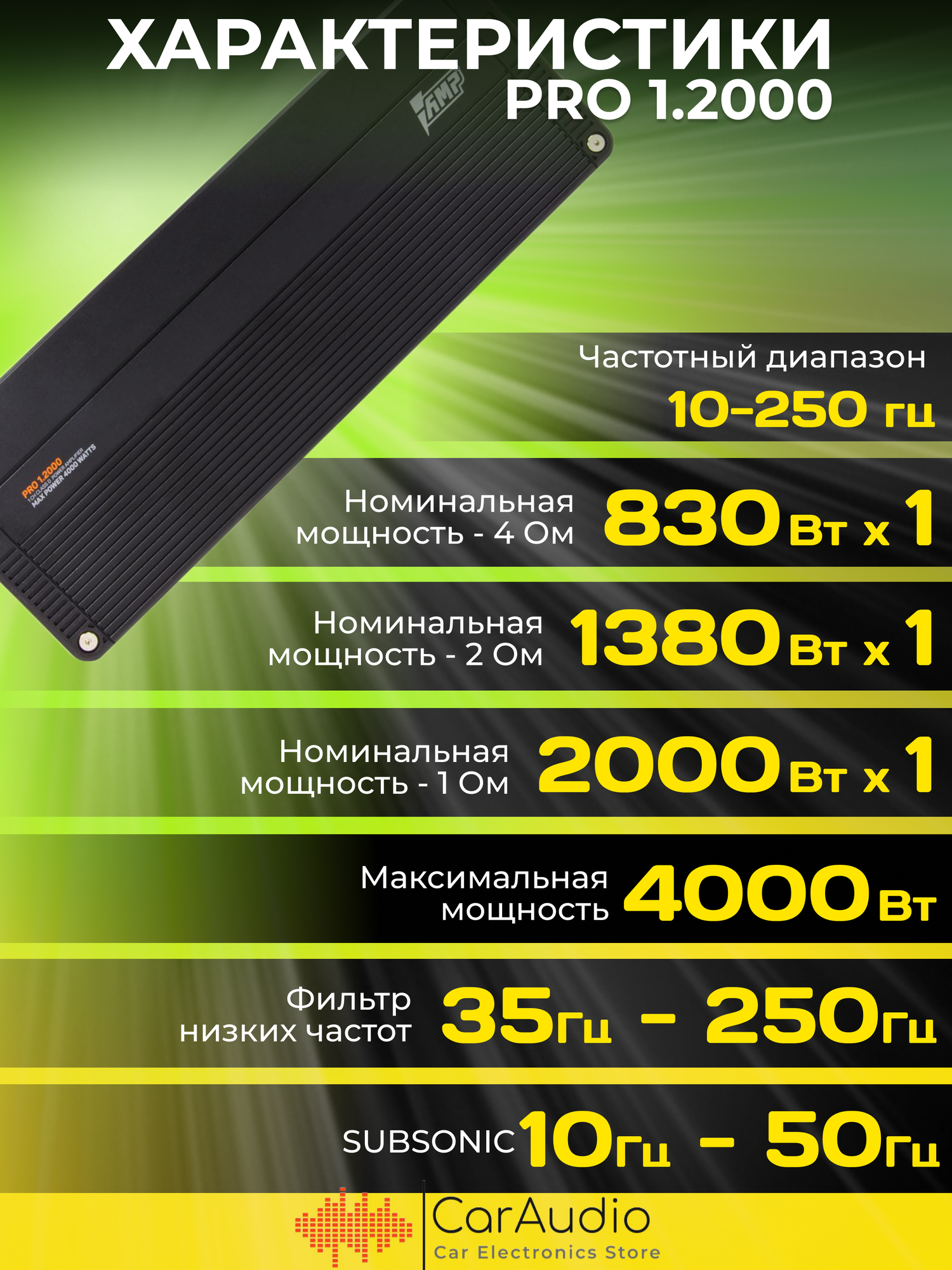 Автомобильный усилитель 1 канал AMP PRO 1.2000 интересное: