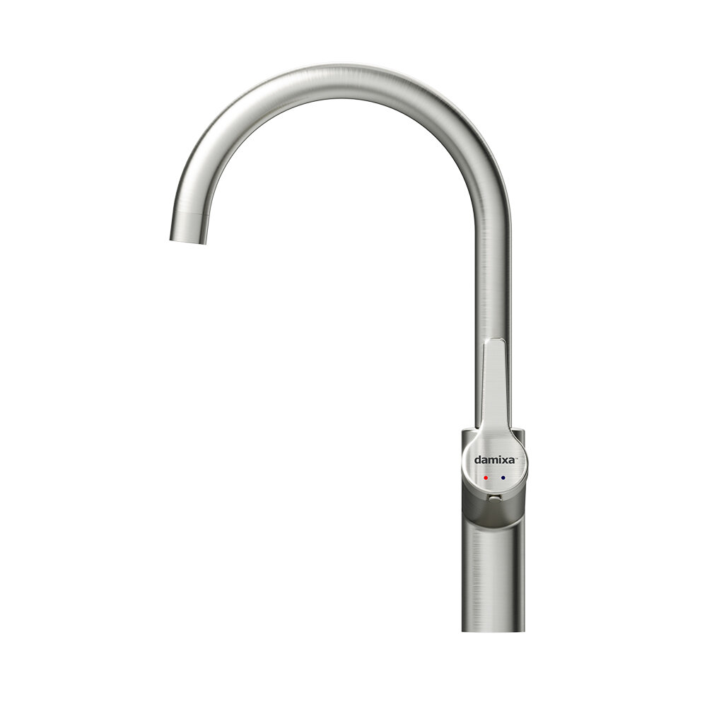 Смеситель для кухни Damixa Eclipse 310720400 никель, С-излив, керамический картридж Light Flow, покрытие High Gloss, аэратор EcoSave, гарантия 5 лет