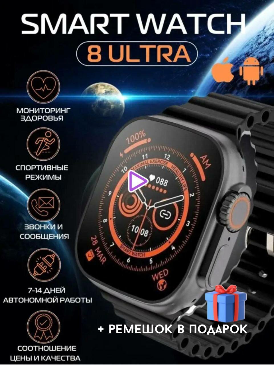 Ниже Вы можете прочитать отзывы на Умные смарт-часы Smart Watch X8+Ultra, 49 mm, черные / Часы электронные мужские и женские 8 серии ультра / Фитнес часы, ознакомится с подробными характеристиками, посмотреть интересные обзоры и фотографии на Умные смарт-часы Smart Watch X8+Ultra, 49 mm, черные / Часы электронные мужские и женские 8 серии ультра / Фитнес часы.